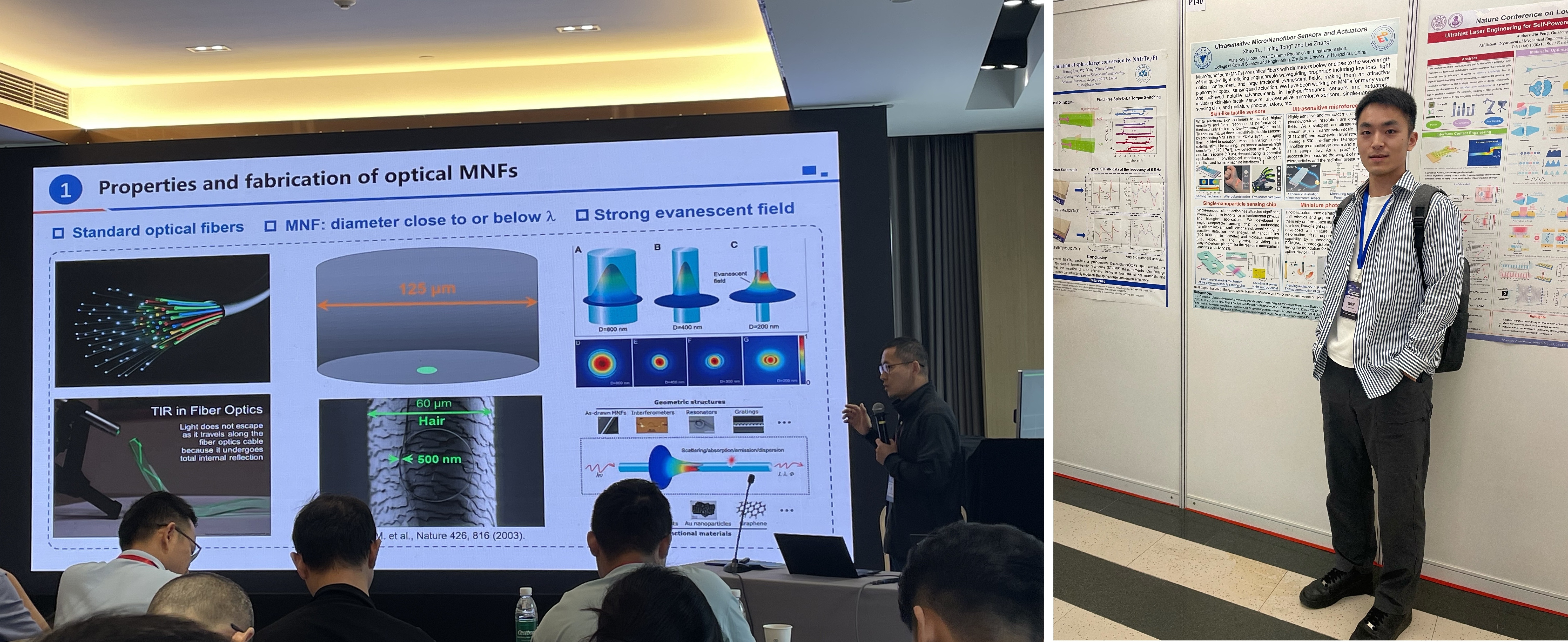 Professor Lei Zhang gave an invited talk on "Optical Micro/Nanofibres Enabled Ultrasensitive Sensors". Xitao Tu presented a poster titled "Ultrasensitive Micro/Nanofiber Sensors and Actuators".